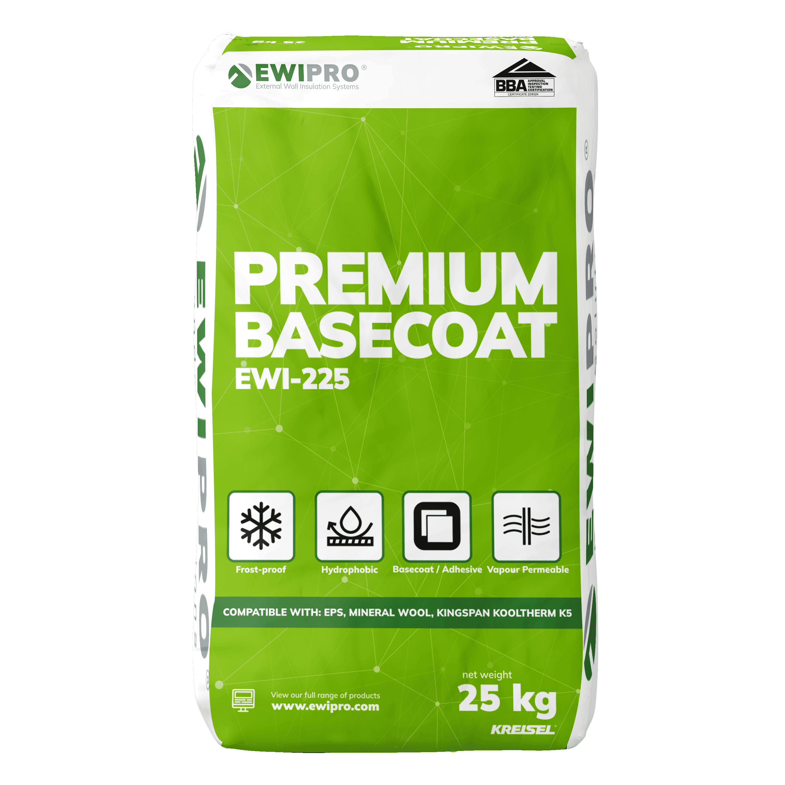 The Performance Basecoat EWI-222P is a dual-purpose basecoat adhesive; it can be used both to fix EPS insulation boards to the wall, as well as a reinforcement layer for render-only systems.