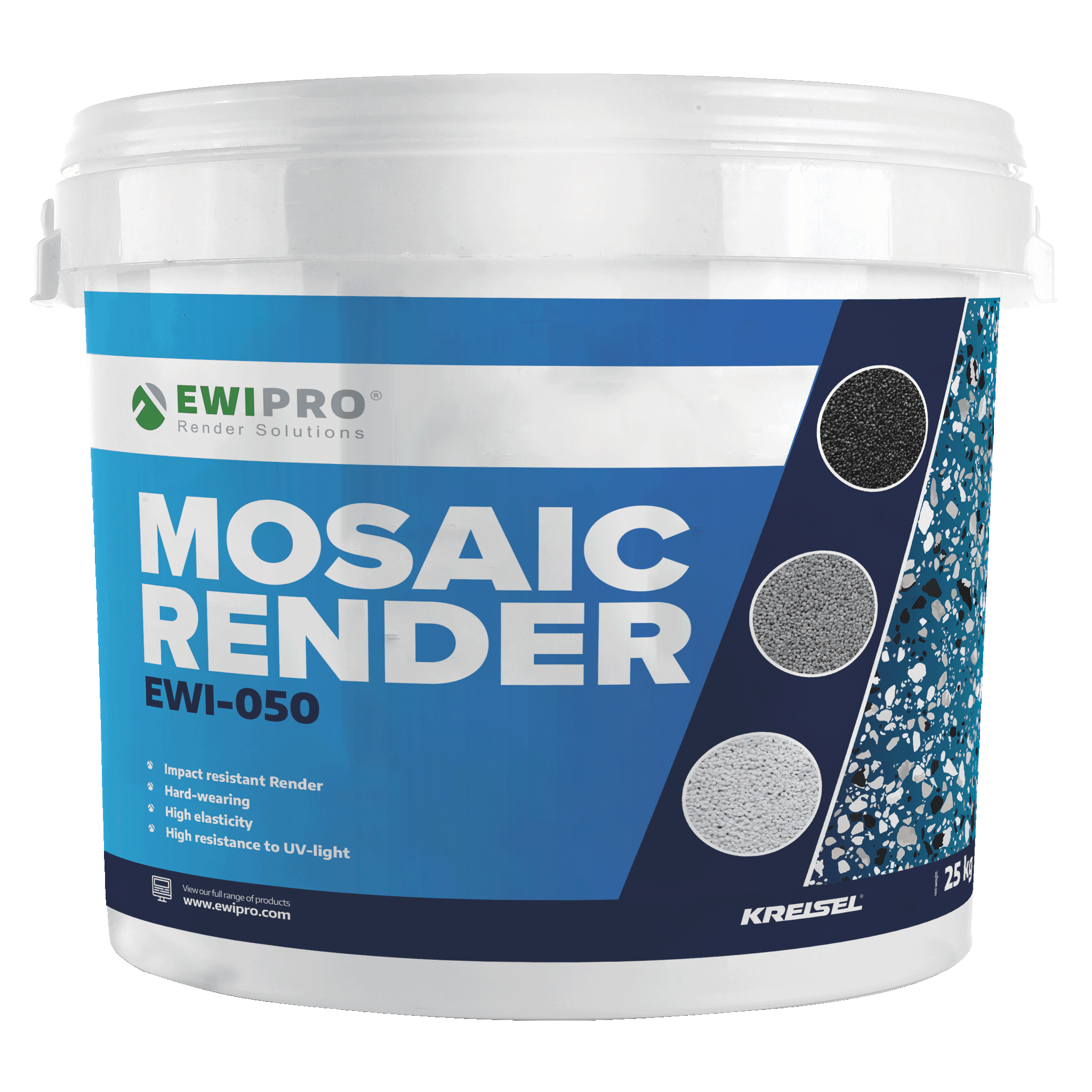 Mosaic Render is made up of coloured quartz aggregate held within a transparent acrylic resin binder. The render is designed to be applied by hand or spray equipment for a granular texture. Mosaic Render is suitable for application on concrete substrates, mineral undercoats, gypsum plasterboards and fibreboards as well as reinforcement layers in EPS external wall insulation systems.