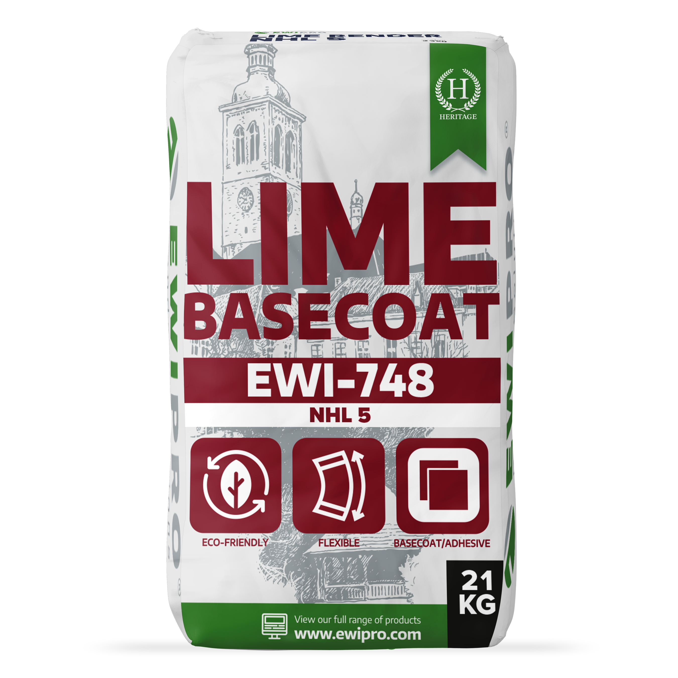 EWI-748 Lime Basecoat is a pre-mixed powdered bonding mortar formulated with natural hydraulic lime (NHL 5), fine natural pozzolans and selected additives to provide excellent adhesion and extended working time. It is designed for use within EWI systems as both a bonding and reinforcement layer, offering strong durability and resistance to salts and acid rain. Its micro-porous structure allows moisture vapour to pass through and evaporate efficiently, supporting breathability, improving thermal performance and contributing to a healthier internal environment compared to conventional cement-based mortars.
